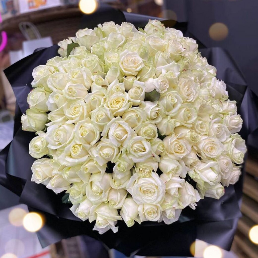 Букет из 101 белой розы в черной упаковке в Белой Калитве